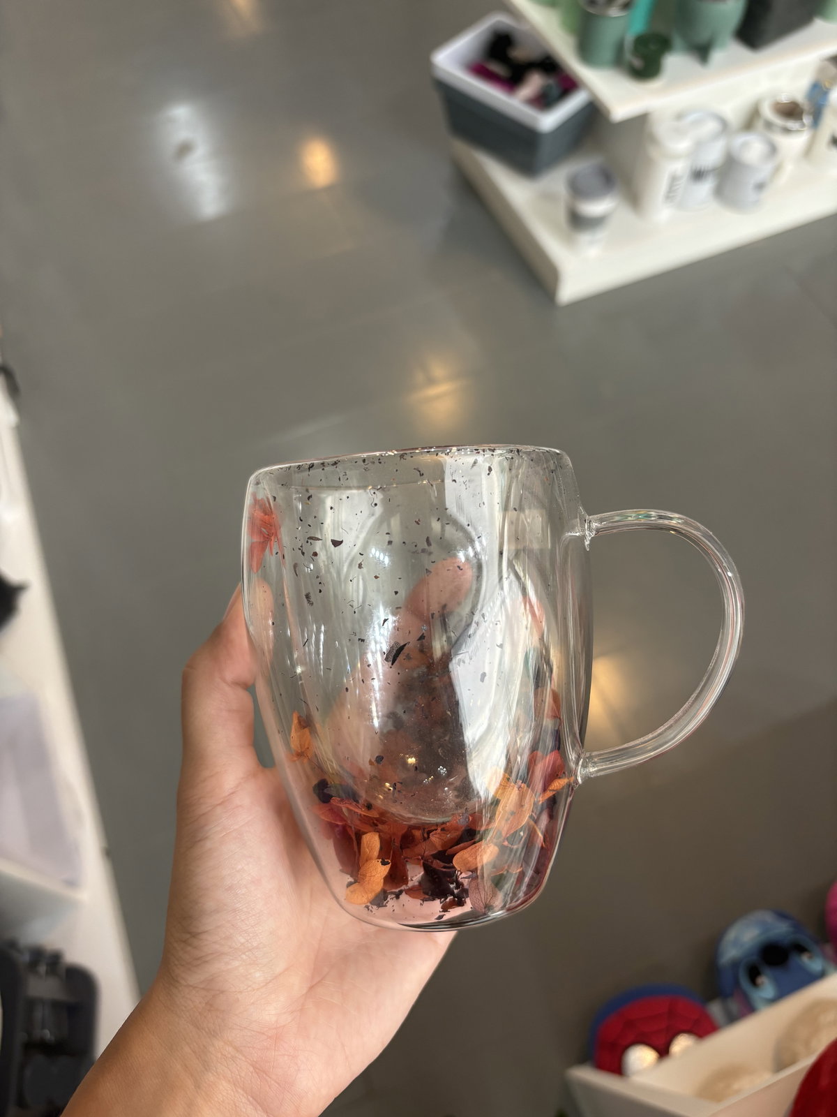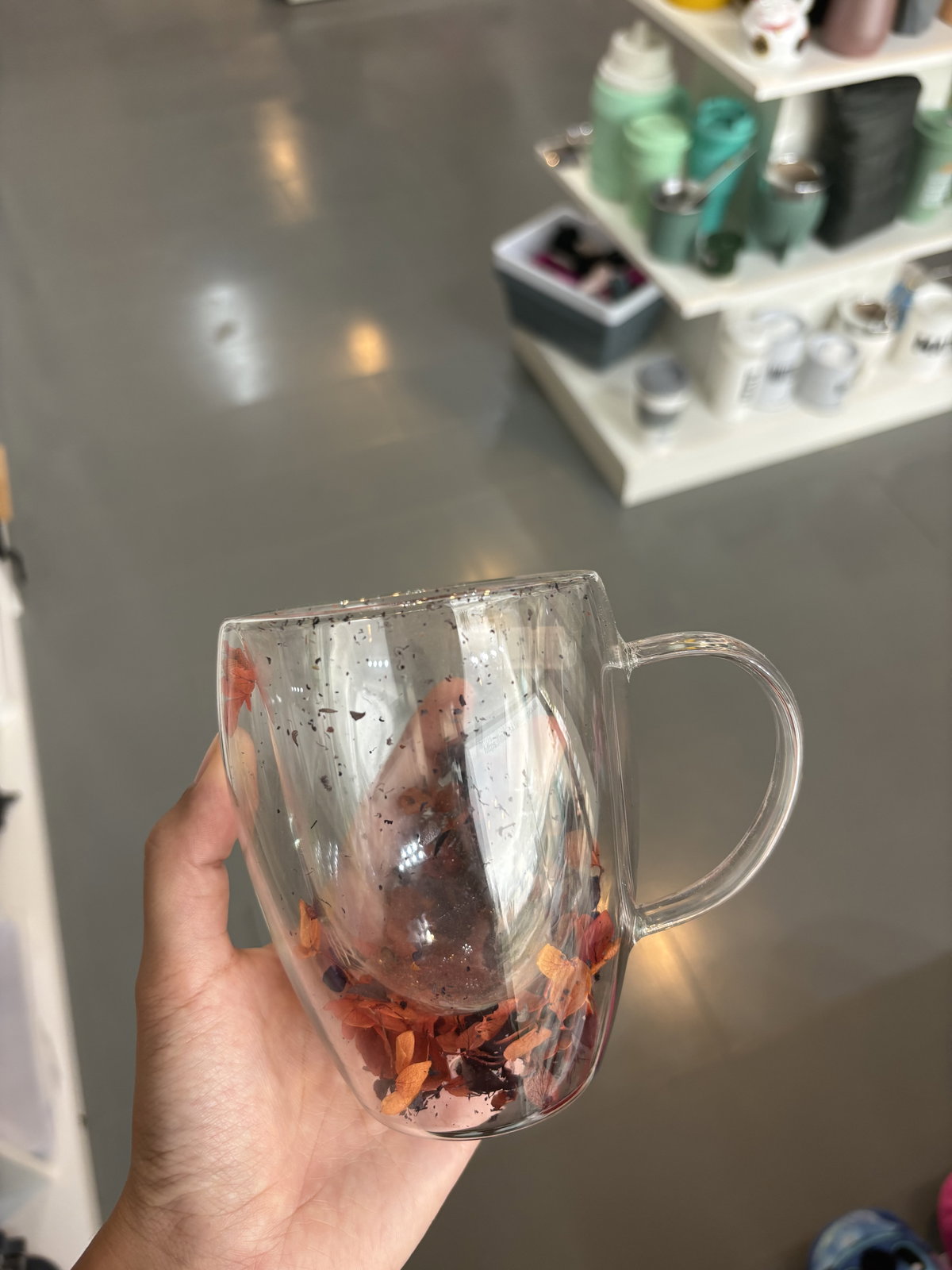 Taza doble vidrio flores